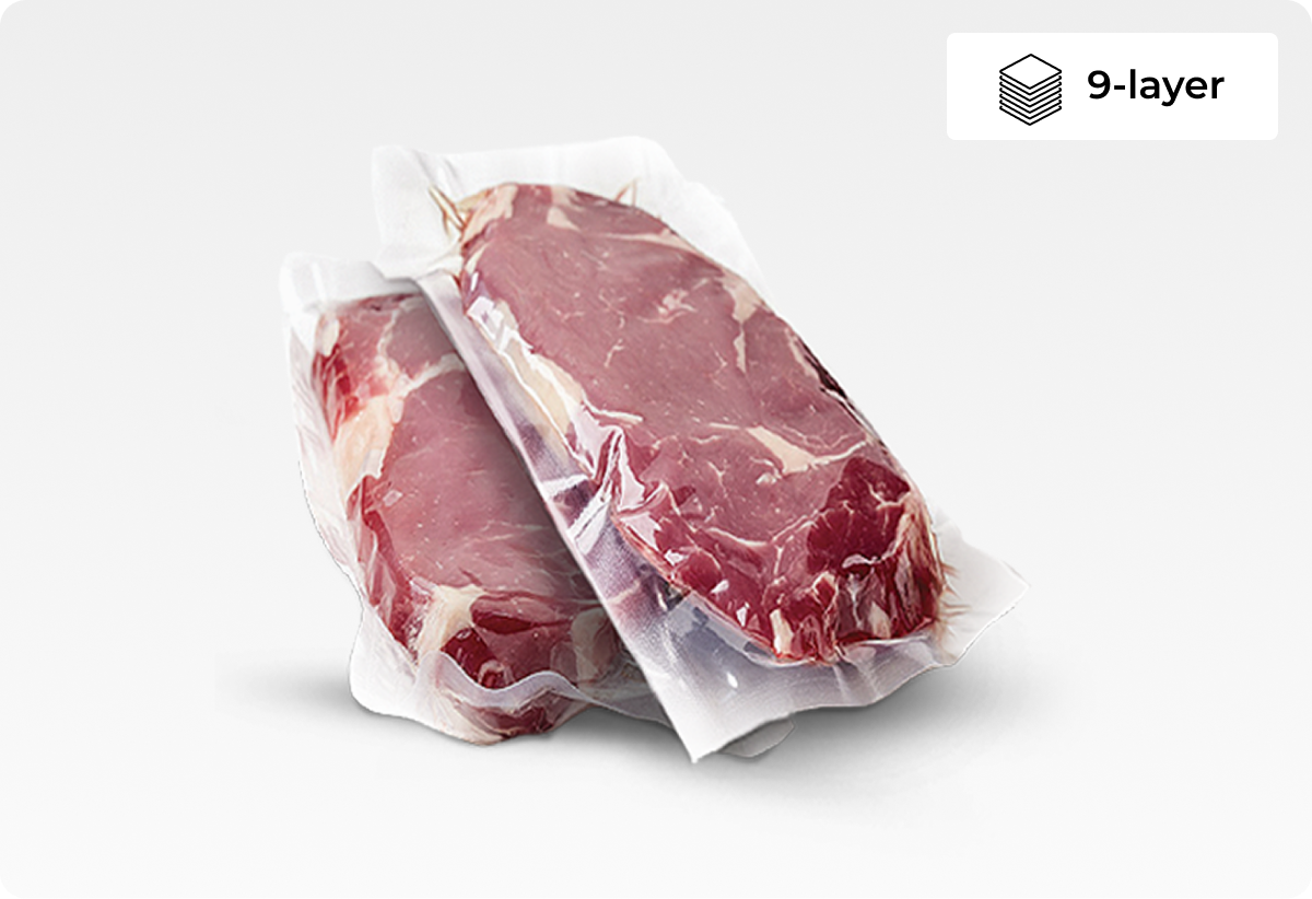 Koekstruzinės (PA/PE, PA/EVOH/PE) ir laminuotos (PET+PE, OPA+PE, PET+PE/EVOH/PE, OPP+PE ir kt.) – pagal poreikį su vidutiniu arba aukštu barjeru. Spaudą užtikrina patikimi partneriai. 9 sluoksnių PA/PE su dvigubu PA suteikia didesnį tvirtumą, apsaugą ir ilgesnį šviežumą.